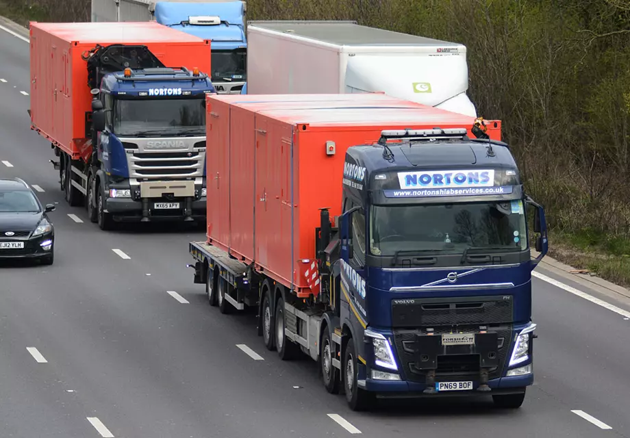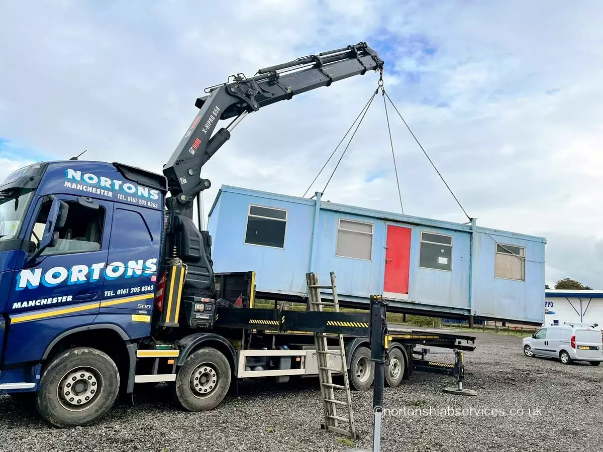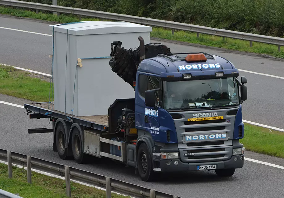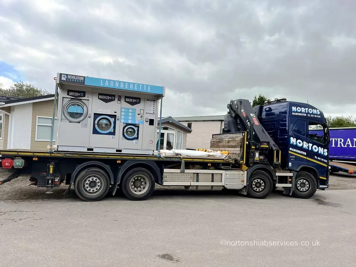 These trucks are better known by the brand name Hiab, after the famous Swedish company Hydraliska Industri AB that has been manufacturing them since the 1940s. These special lorries have a crane fitted behind the driver's seat. They can lift large heavy items such as cabins and containers while keeping the lorry stable and safe. This means that one vehicle can both move and lift things, which saves lots of money compared to hiring separate wagons to transport and cranes to lift.