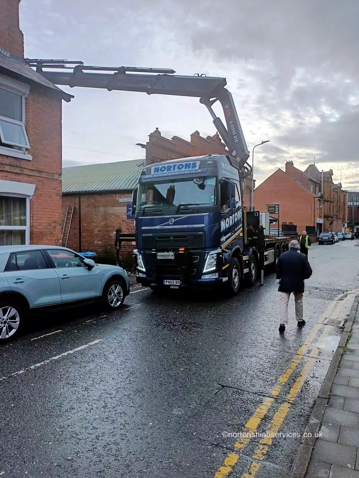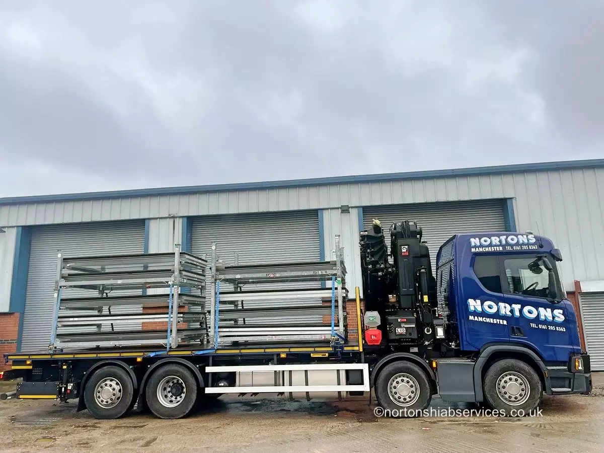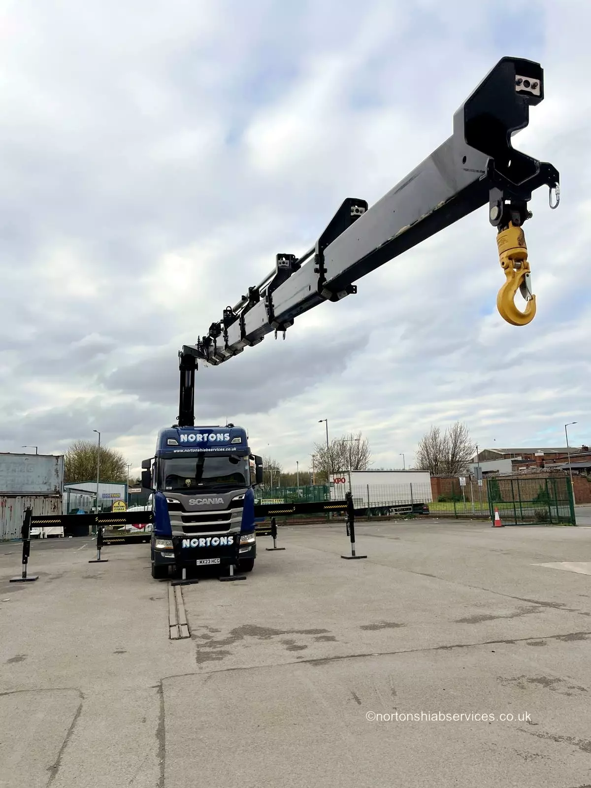 These trucks are better known by the brand name Hiab, after the famous Swedish company Hydraliska Industri AB that has been manufacturing them since the 1940s. These special lorries have a crane fitted behind the driver's seat. They can lift large heavy items such as cabins and containers while keeping the lorry stable and safe. This means that one vehicle can both move and lift things, which saves lots of money compared to hiring separate wagons to transport and cranes to lift.