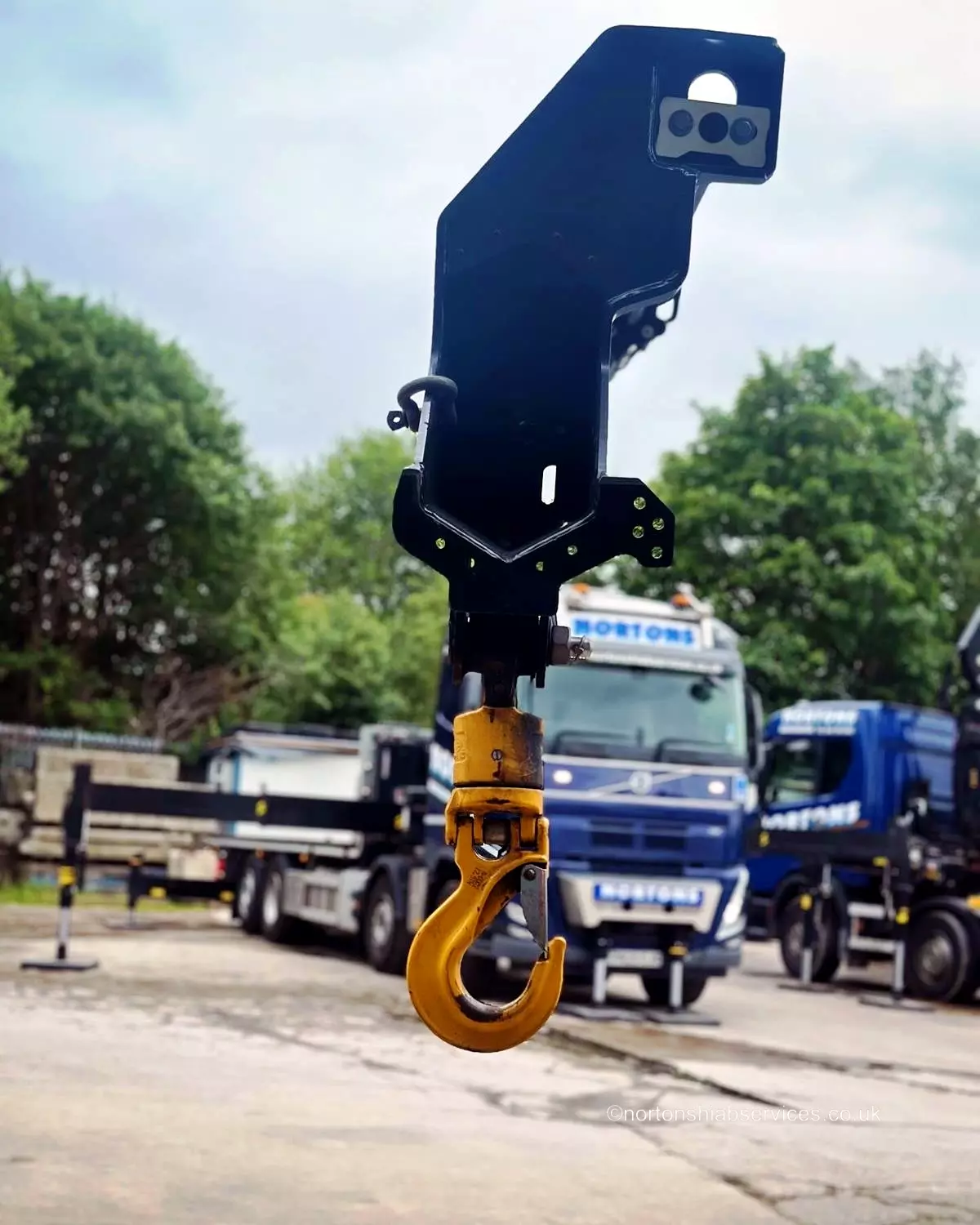 The trucks are really flexible; they drive normally on roads but turn into proper cranes when you need them. They come with different lifting hooks. Some have the hook at the back which helps them reach further.